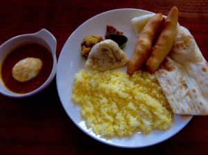 サモサ2品、チキンスープ、トマトチャトニ、チャイ
