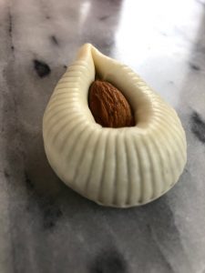 ラム肉のスパイスグリルをいろんな野菜などと一緒にサンドした モロカンメシュウイバーガー 白いんげん豆のスープ らくだの目(はちみつとアーモンドがたっぷりのオレンジフラワー香る伝統菓子) ぱちぱちおめめのらくださんの目をモチーフにしたお菓子。